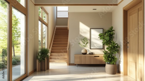 Fototapeta premium Modern Wooden Staircase Entryway Design Ideas