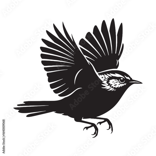 © Naseem, Obraz premium Modern Wren Silhouette – Wren Vector Design for Professional Graphics – Black Vector of Wren