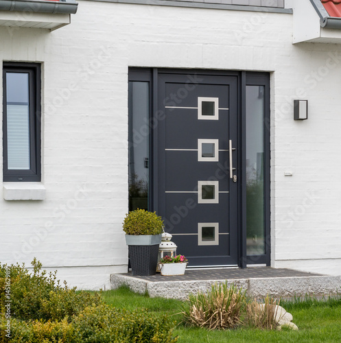 © GM Photography, Fototapeta premium Moderne graue Haustür und Glas