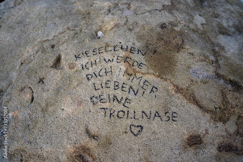 Fototapeta premium Moderne Inschriften im Sandsteinfelsen der Sächsischen Schweiz
