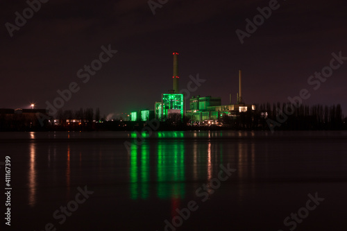 © mitifoto, Naklejka premium Modernes Kraftwerk im Hafen Düsseldorf, Gaskraftwerk, Kraft Wärme Kopplung
