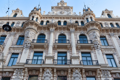© vladislavmavrin, Fototapeta premium Modernist building on Alberta street 24, Riga, Latvia