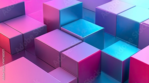 © zhikun, Obraz premium Modular 3D abstract geometric stage with gradient lighting and smart grid zone, for digital advertising, e-commerce hero images, and brand visual systems, pure background with copy space