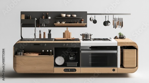 © Thanaporn, Obraz premium Modular kitchen setups with flexible appliances, designed for adaptability