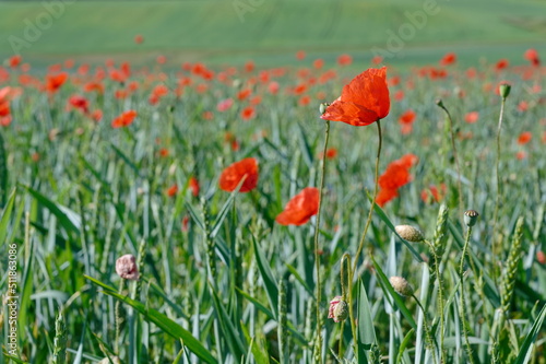 Fototapeta premium Mohn, Klatschmohn, Poppy, rote Mohnblumen im Getreidefeld