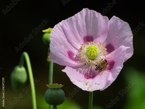 Fototapeta premium Mohn (Papaver somniferum) mit Bienen
