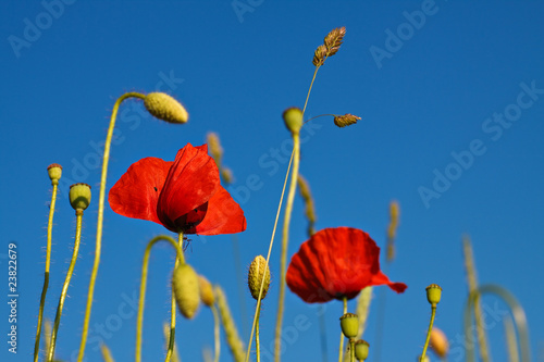 © Rico Ködder, Obraz premium Mohnblume mit blauem Himmel