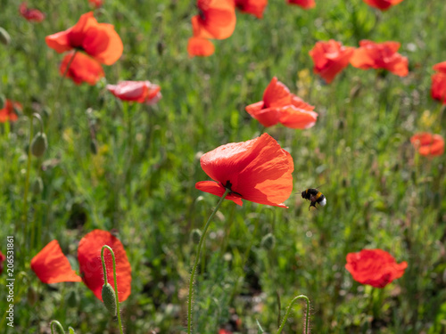 © Tim Sebastian Peters, Obraz premium Mohnblume mit Hummel