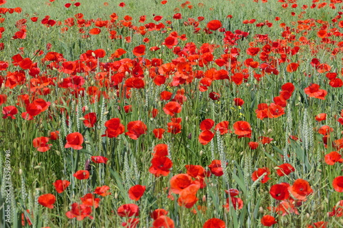 Fototapeta premium Mohnfeld gemischt mit Raps