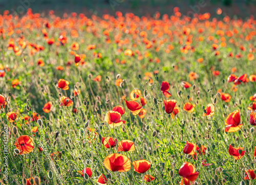 © pwmotion, Fototapeta premium Mohnfeld im Abendlicht, Mohn (Papaver), Bayern, Deutschland, Europa