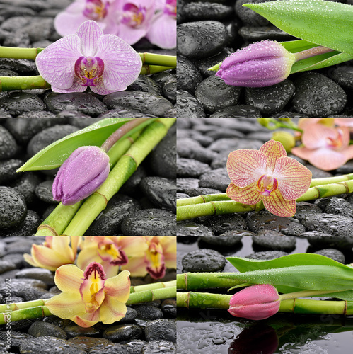 © CUKMEN, Naklejka premium Mokre storczyki z tulipanami