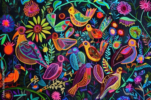 Fototapeta premium Molas from Panama Kuna Islands Bright Colorful Birds