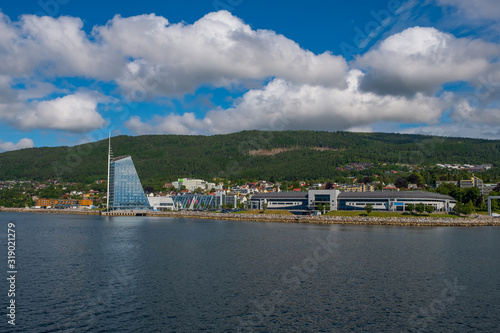 Naklejka premium Molde, Norway - july 2019. Modern architecture on the background of...