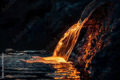 © volga, Naklejka premium Molten lava flow at twilight in nature