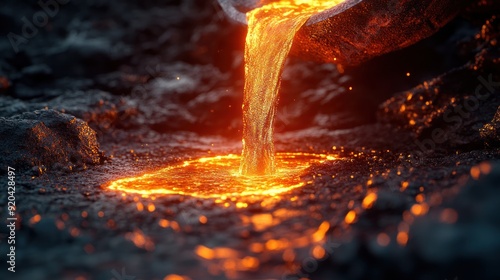 © Rere_Art151, Fototapeta premium Molten Lava Flowing Over Dark Rocks