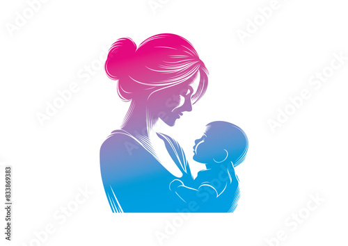© CROP MEDIA, Obraz premium Mom and baby vector, mother’s day vector, mom and child vector