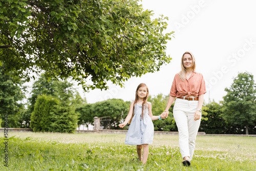 © Rabizo Anatolii, Obraz premium Mom and daughter walking and having fun together in the park. Happy family lifestyle. Love in family. Hapiness of mother and her child.