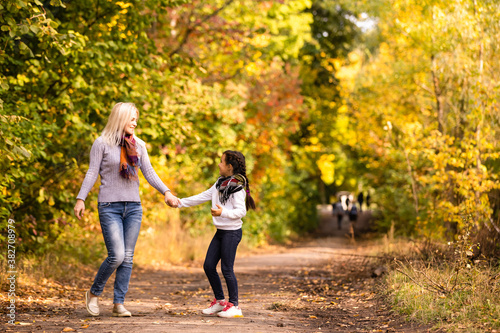 © Angelov, Fototapeta premium Mom with her daughter during autumn