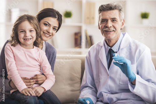 © VadimGuzhva, Obraz premium Mom with kid at the doctor.
