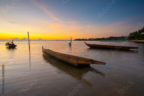 © APRI, Fototapeta premium moment zachodu słońca i łódź, Batam, Indonezja