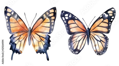 © Johnathan, Obraz premium Monarch Butterflies Painted in Watercolor Style Generative AI