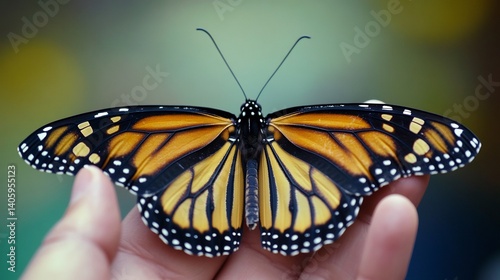 Fototapeta premium Monarch butterfly antennae twitching gently it prepares for its maiden flight...
