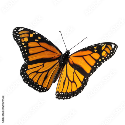 © DANUSHKA, Fototapeta premium Monarch butterfly closeup with detailed wing patterns on white