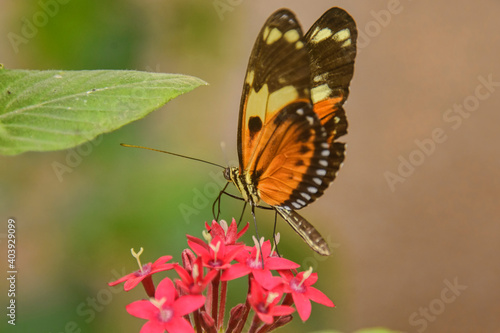 Fototapeta premium Monarch butterfly (Danaus plexippus) drinking nectar, Mindo, Ecuador