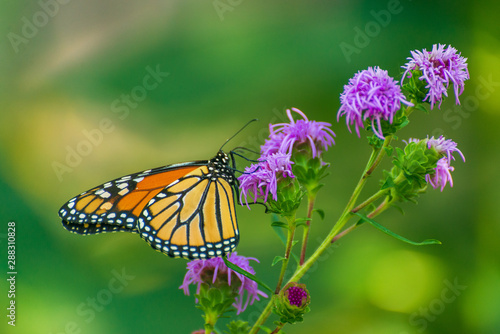Fototapeta premium Monarch butterfly, Danaus plexippus, on liatris flower