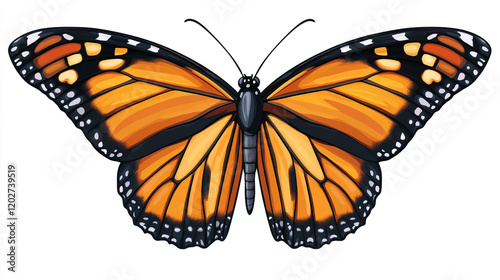 © Shahazadi, Fototapeta premium Monarch butterfly displayed prominently with vibrant orange and black wings in detailed illustration
