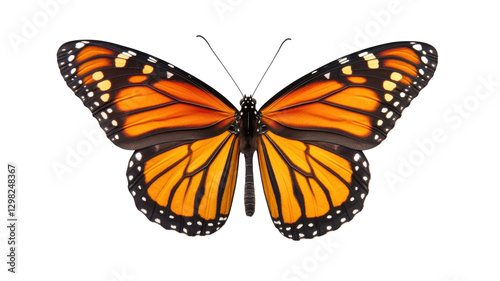 © shakeela, Fototapeta premium Monarch butterfly displaying vibrant orange and black wings under natural light