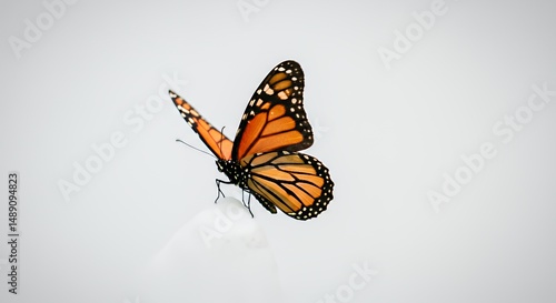 Fototapeta premium Monarch Butterfly Displaying Wing Pattern Isolated on White Background Wildlife and Natural Beauty