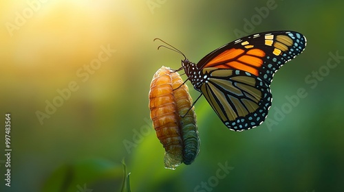 © otwdesign, Obraz premium Monarch Butterfly Emerging from Chrysalis