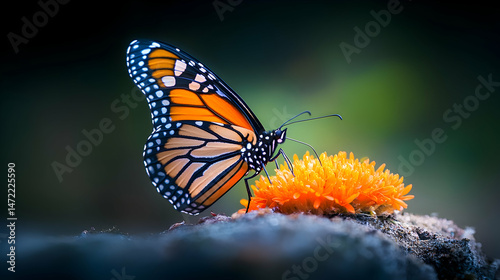 © cris, Fototapeta premium Monarch butterfly feasting on a flower