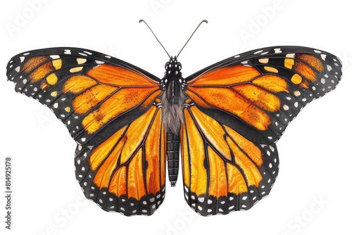 © Neural9 Project, Fototapeta premium monarch butterfly flat design, front view, migration theme, water color, monochromatic color, no background