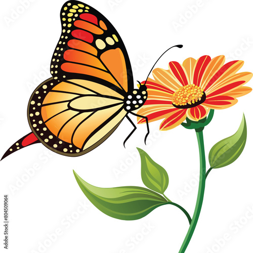 Fototapeta premium Monarch butterfly flying illustration. Monarch Butterfly on flowers