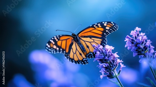 © decor, Fototapeta premium Monarch Butterfly Gracefully Hovering Near Lavender Blossoms
