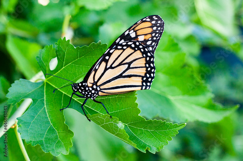 © JB, Obraz premium Monarch butterfly green leaf background