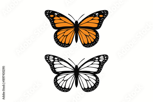 Obraz premium Monarch Butterfly in Color and Black and White Outline