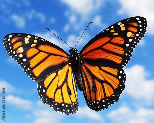 © gorengbakar, Fototapeta premium Monarch Butterfly in Flight with Blue Sky.