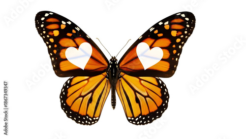 Fototapeta premium Monarch butterfly isolated on transparent background with heart shaped spots