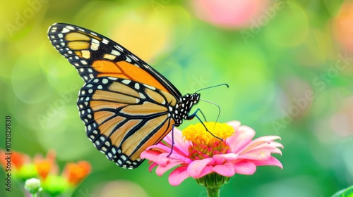 Naklejka premium Monarch Butterfly on a Pink Flower