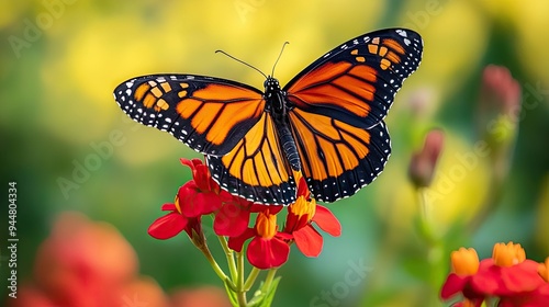 © kenza07, Fototapeta premium Monarch Butterfly on a Red Flower
