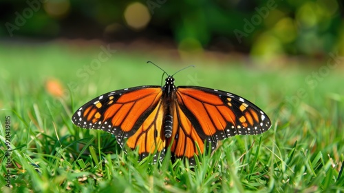 © Umi Sakina, Fototapeta premium Monarch Butterfly on Grass
