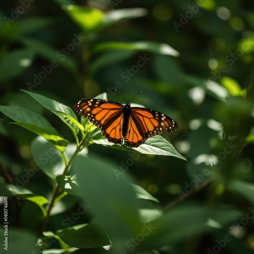 © adifa, Fototapeta premium Monarch Butterfly on Green Leaf. (1)