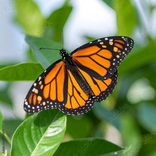 © Febi, Fototapeta premium Monarch butterfly on green leaves