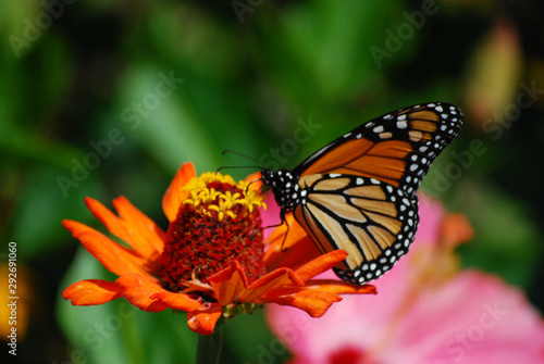 Fototapeta premium Monarch Butterfly on orange flower profile in garden