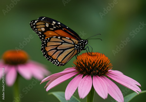 © Ikhbal, Fototapeta premium Monarch Butterfly on Pink Coneflower A Stunning Nature Close-Up