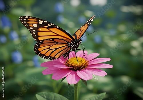 © James, Fototapeta premium Monarch Butterfly on Pink Coneflower in Garden