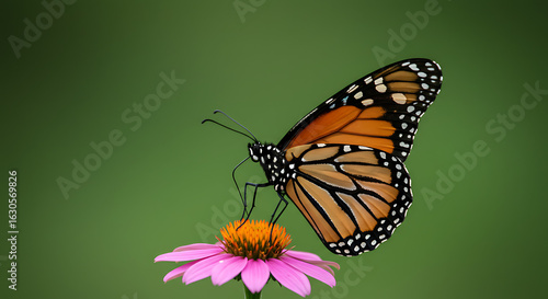 Fototapeta premium Monarch Butterfly on Pink Coneflower, Serene Nature Scene, Vibrant Colors,...